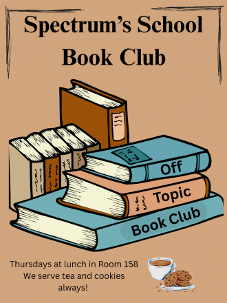 “Off Topic”, Spectrum’s Student Book Club, meets every Thursday at lunch in Mr. Thatcher’s room (158).